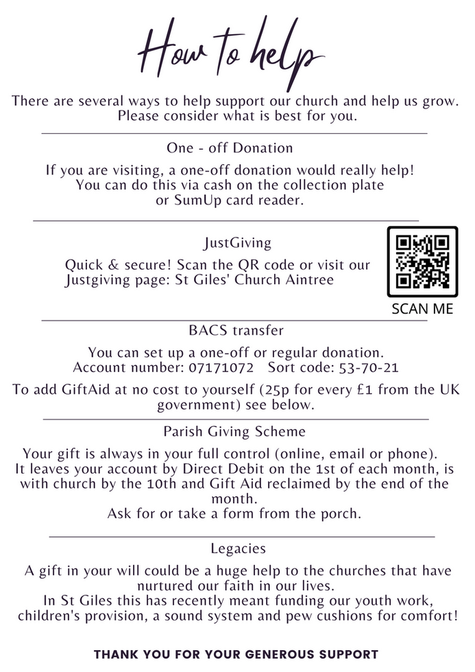 Like all church of England churches, we recieve no government funding.