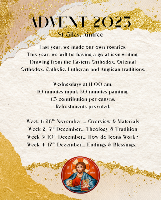 This Advent, we will be having a go at painting our own icons & exploring the theology and spirituality behind their use.